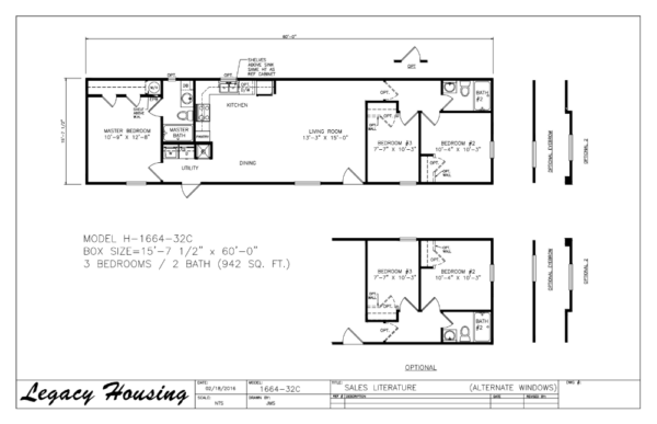 Legacy 1664-32C Singlewide featuring 942 square feet of living space, 3 bedroom, and 2 bathroom.