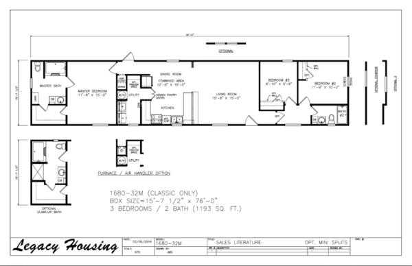 Legacy 1680-32M Singlewide featuring 1193 square feet of living space, 3 bedroom, and 2 bathroom.